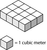 When the prism is complete, its height will be 6 meters. What is the volume, in cubic meters, of the completed prism?