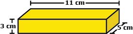 The rectangular prism below has a length of 11 cm, a height of 3 cm, and a width of 5 cm. What is the volume?
