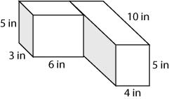This is the result of correctly calculating the volume of each box and adding them together: (5 x 4 x 10) + (6 x 3 x 5).
