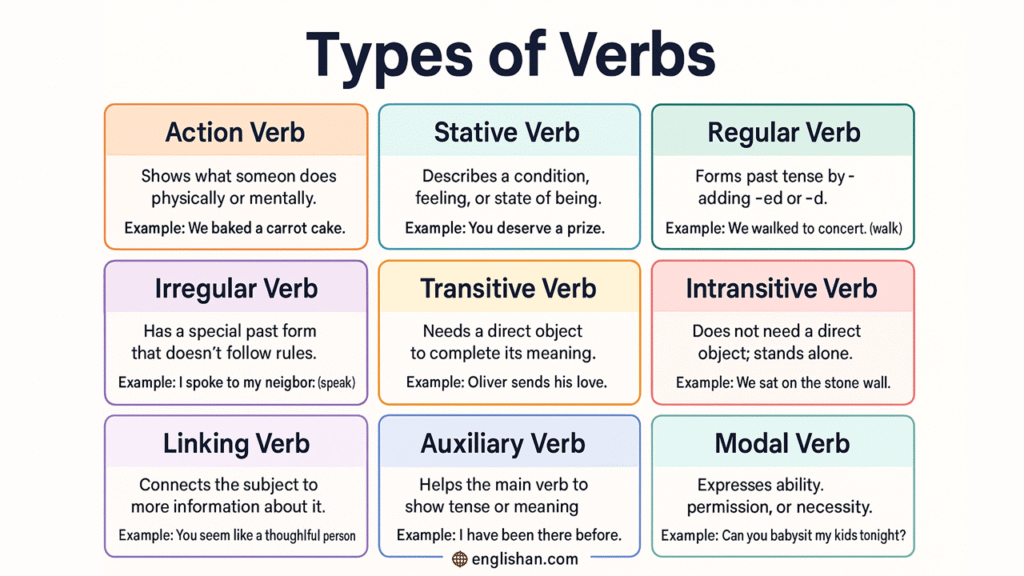 List different types of verbs