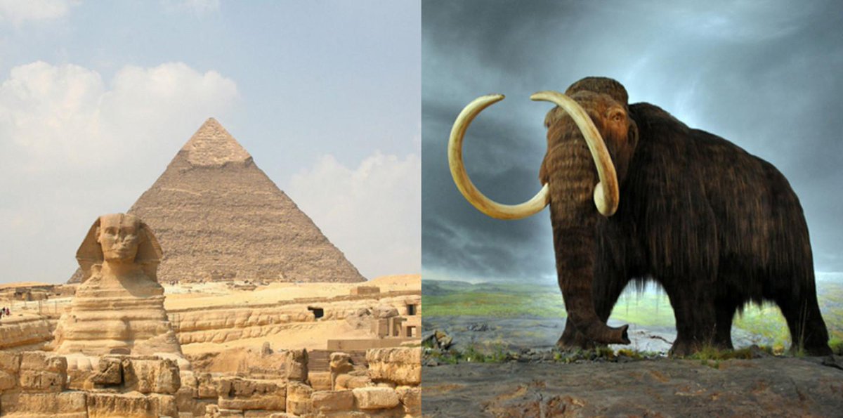 Woolly mammoths lived at the time the Great Pyramid in Egypt was built.