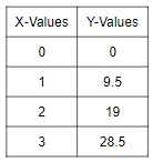 If the x-values increase by 1, the y-values increase by 7. What equation would represent this?