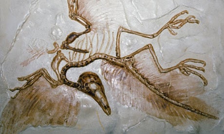 Toothed dino-bird of the Jurassic period whose fossil is seen here