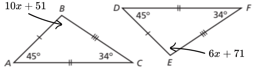 Solve for x that will make Angles B and E congruent.