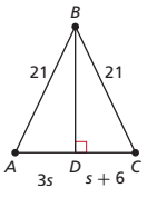 BD is a perpendicular bisector of AC. Solve for s.