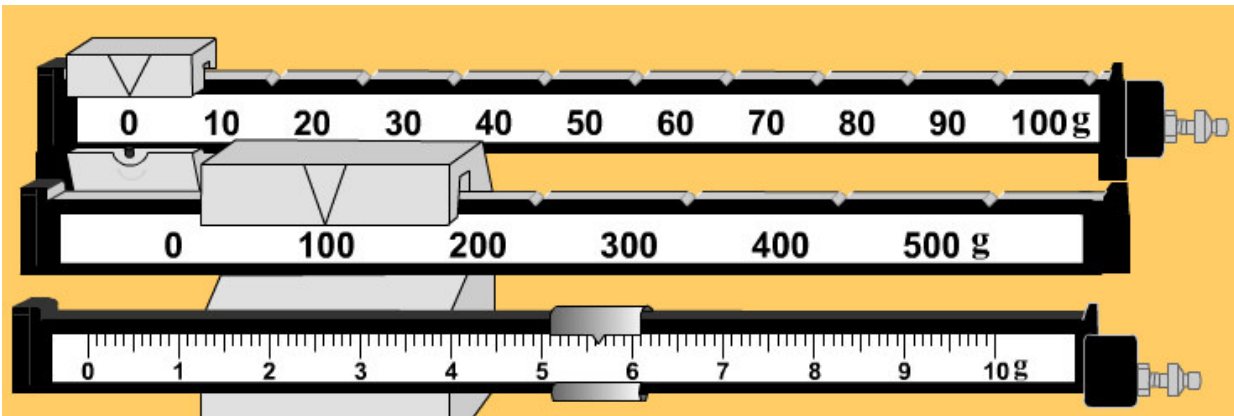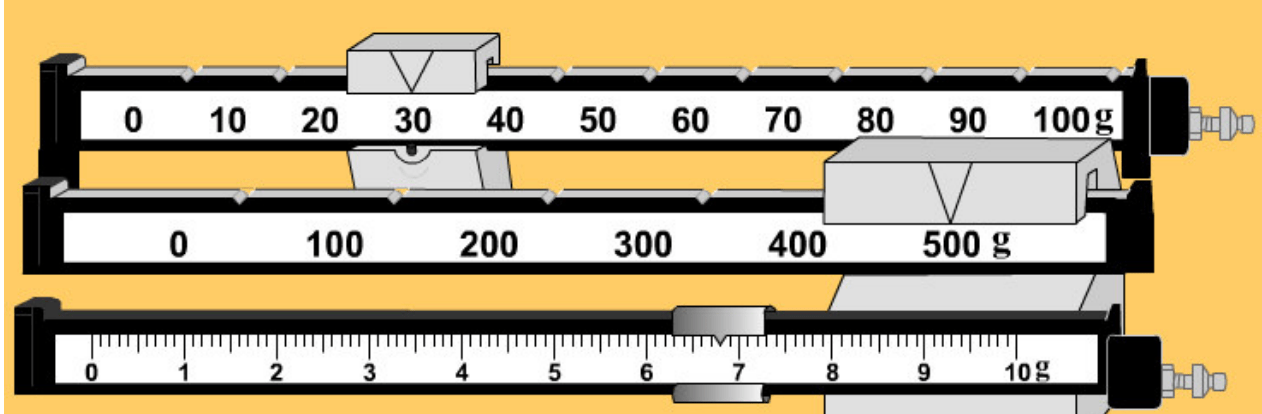 Looking at the image of the triple beam balance, what is the mass (include the correct label)