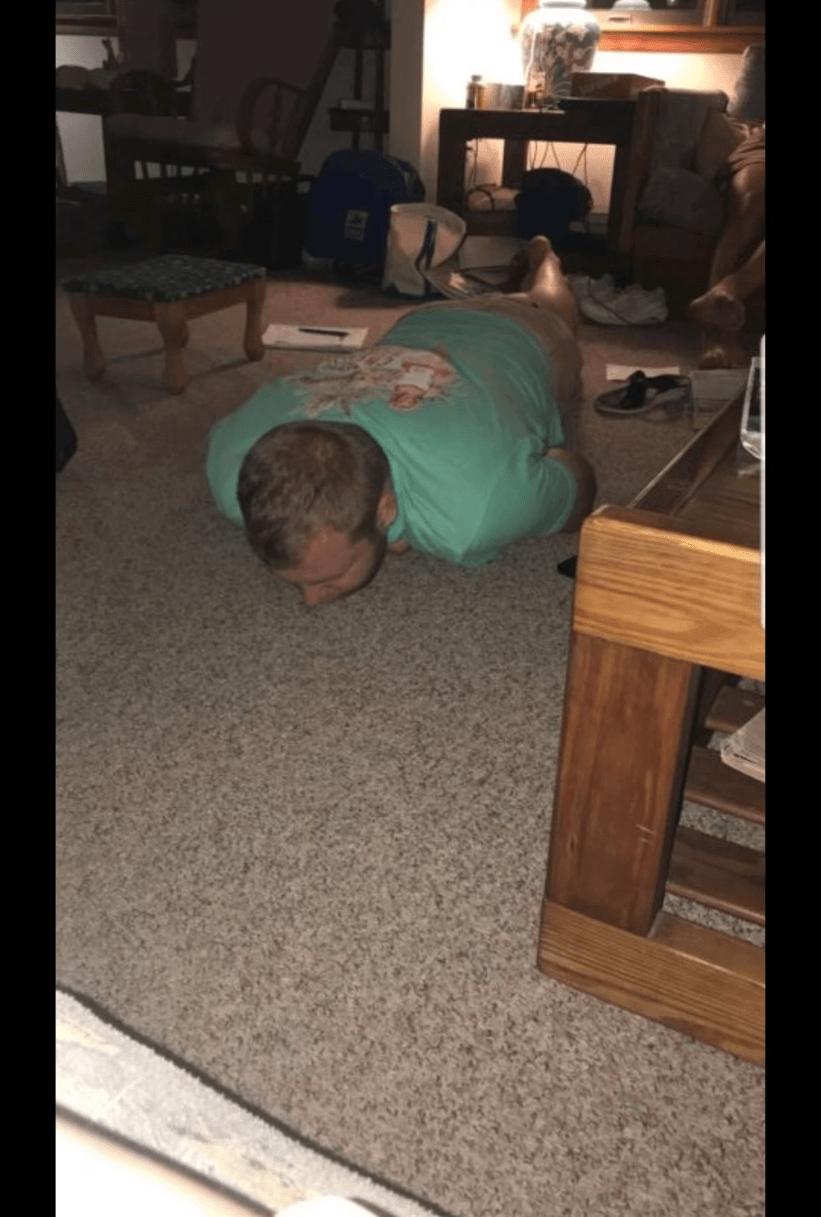 Rich - planking in the living room of his grandparents beach house