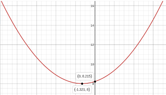 Kokwe is playing Around The World. The two points in which the three point line intersects the base line is where she shoots. She also shoots at the top of the key/point. The baseline is the x axis. The court that she shoots at has a full parabola instead of a half parabola with straight sides for their three point line. Two points on the three point line are (2 , -1.141) and (4.75 , 2.54) ← That is the vertex of the parabola. Find the equation for the parabola in both vertex and standard form. Also, find the x & y values (coordinates) of where Kokwe shoots. (include the picture for reference)