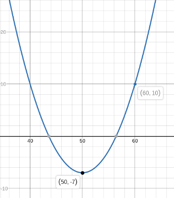 Where Kokwe shoots: Roots - x = 2.496 & 7.004; Vertex - h = 4.75; k = 2.54