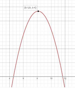Answer: Equation - y = -0.5 (x - 4.75)^2 + 2.54