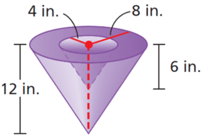 ***Double***Find the volume of the composite figure. The figure shown is a cone with a hole in the shape of half a sphere. Round the answer to the nearest tenth.