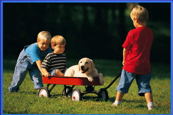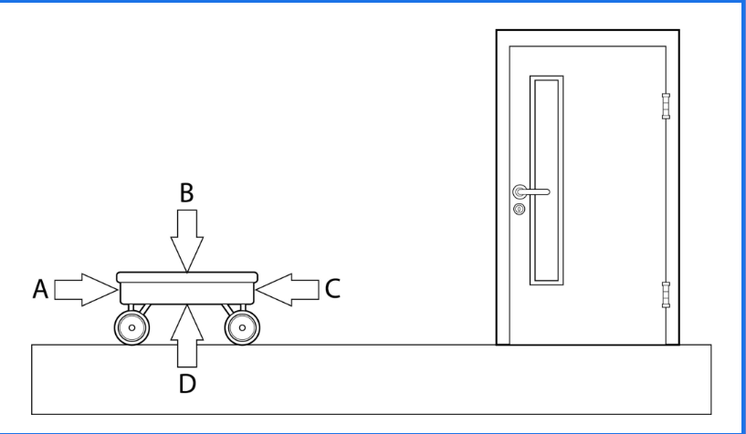 To move the wagon towards the door, it should be pushed in the direction indicated by which arrow?