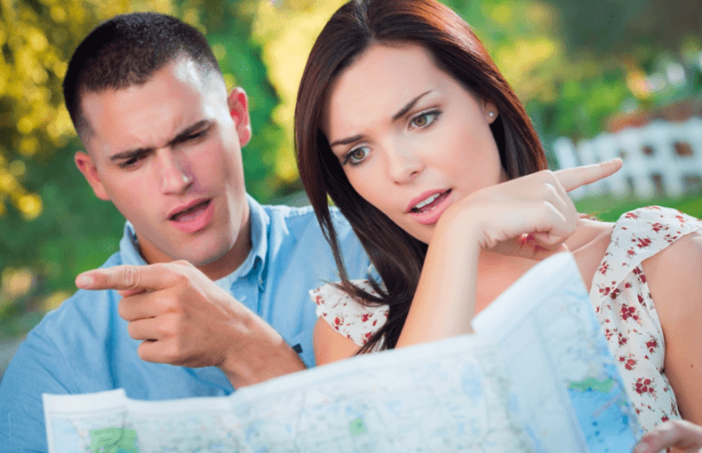 His eyebrows are furrowed and his mouth is open so he may be confused. The problem is they are lost.