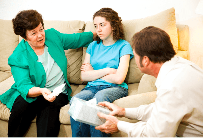 What is the girl doing with her body?  How do you think she feels? Does she want to talk to the other two people in the pictures?