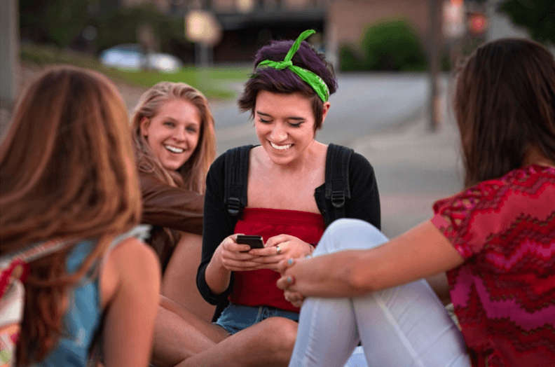 What is the girl in the green head bands body language telling you? Do you think the text message she is looking at is good or bad?
