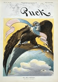 In this Puck cartoon titled “Gee! What a Stretch,” the artist criticizes U.S. foreign policy by suggesting that the country is expanding its power too far. What perspective is the cartoonist expressing about American imperialism?
