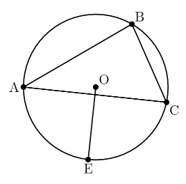 Let △ABC be inscribed in a circle centered at O. The central angle about AC is 120°, and that about BC is 72°. This is the magnitude of ∠OBE, where E is drawn such that OE and AC are perpendicular.