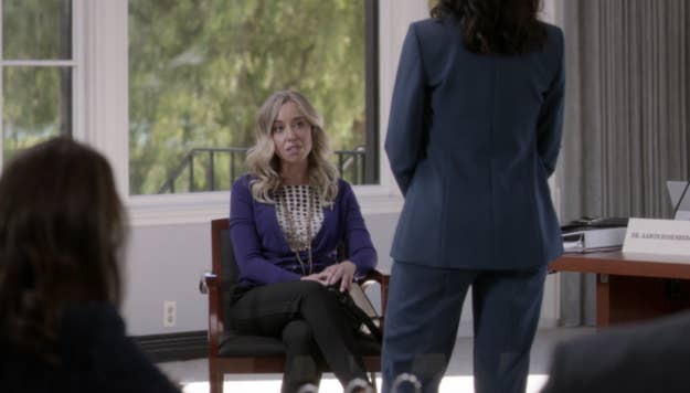 Which character from Season 1 appeared at Meredith's hearing in from of the medical board?