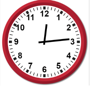 The clock shows the time Alindah began washing the car. It took her 45 minutes to wash the car. What time is it when she finishes?