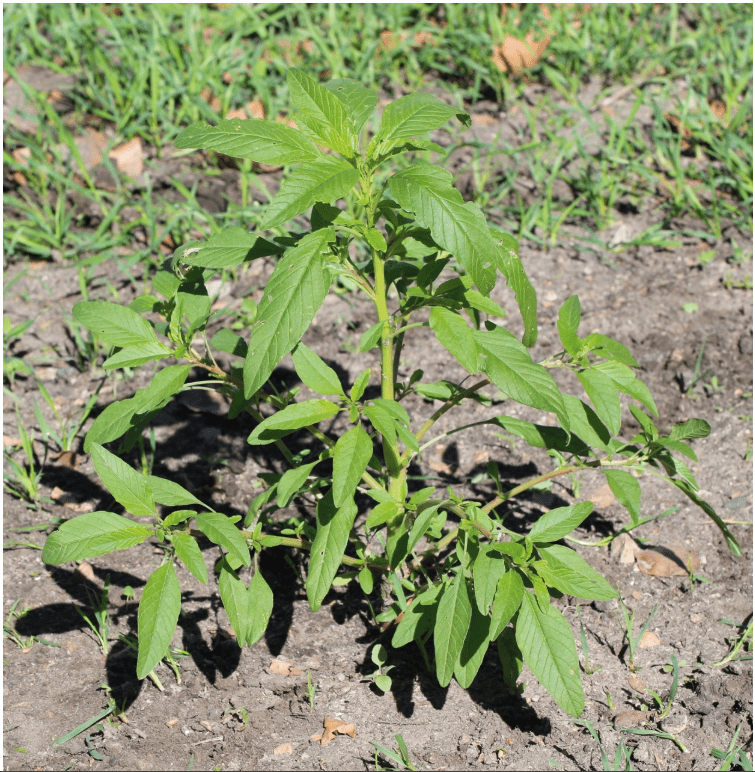 A. tuberculatus - While a little bit less notorious than its Palmer cousin, this is a major weed of agricultural fields, especially in the South, and can be distinguished by its petiole shorter than the leaf blade (its longer in Palmer). There are reports of resistance to ALS inhibitors, HPPD inhibitors, and 2,4-D.