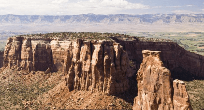 Elevated landforms with flat tops and very steep, rugged edges and sides.