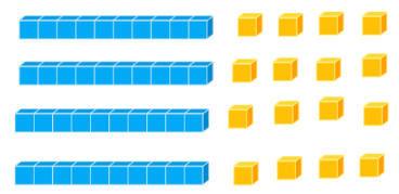 Descompusieron el 14 en 1 decena y 4 unidades. Luego lo multiplicaron por 4.