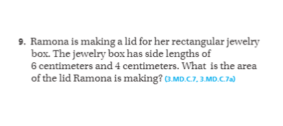Beth is incorrect. The area of the blue bathroom is 64 square feet because 8x8=64 and the area of the green bathroom is 54 square feet because 9x6=54. 64 is larger then 54, so the blue bathroom is larger.