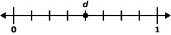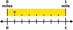 Kennedy's gym class is running 1 mile. The running track has marks spaced evenly along the whole mile. Kennedy's spot is shown with an x. What is the fraction of a mile that Kennedy has run?