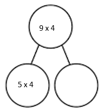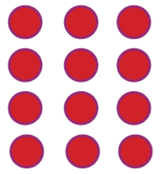Fill in the blanks using the distributive property to find the total number of circles in this array.