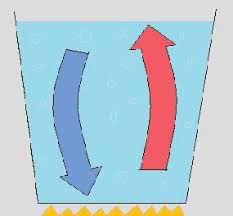 Which method of thermal energy transfer is being depicted in this illustration (by the red and blue arrows)?