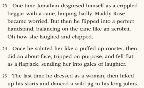 Read paragraph 23- 25 and give me two examples of how Jonathan disguised himself