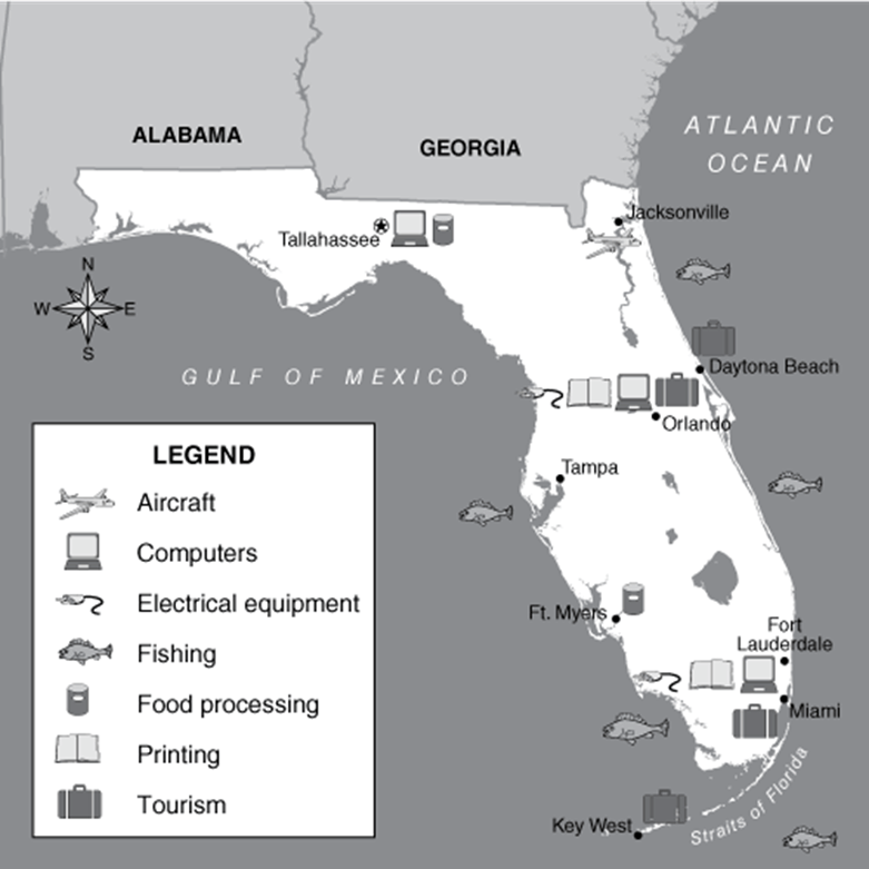 Based on the map, what main industries are near Fort Lauderdale, Florida?