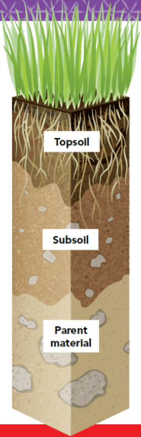 Select the layer in which breaking up of rock by plant roots would most likely take place.