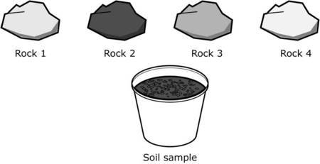 Which rock is most likely the kind of rock that produced the sediments that made the soil sample? A Rock 1 B Rock 2 C Rock 3 D Rock 4