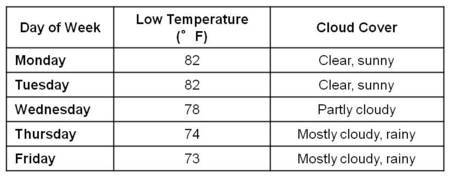 The table shows some weather data collected over a five day period. What trend over the five days can be observed in the collected data?