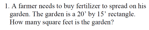 The figure below represents Ms. Eggert's kitchen. Her house is getting remodeled and the length of her kitchen will increase by 10 feet and the width by 5 feet. What is the DIFFERENCE in the AREA, in square feet, between her old kitchen and her new kitchen?