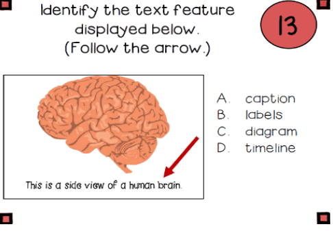 Name 2 text features you may see in a non-fiction text