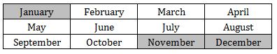 6.Tony's grandmother is coming to visit for 14 of the year. The months she is visiting are shaded on the calendar below.