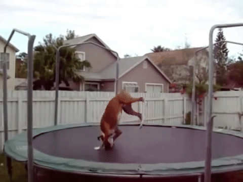 This dog is using this type of energy as he bounces up and down on the trampoline.