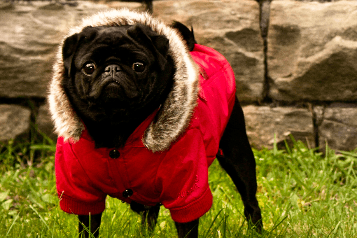 This dog's coat is an insulator and works by slowing down the escape of heat thanks to the --------- in the coat's stuffing and in the space between the dog and the coat.