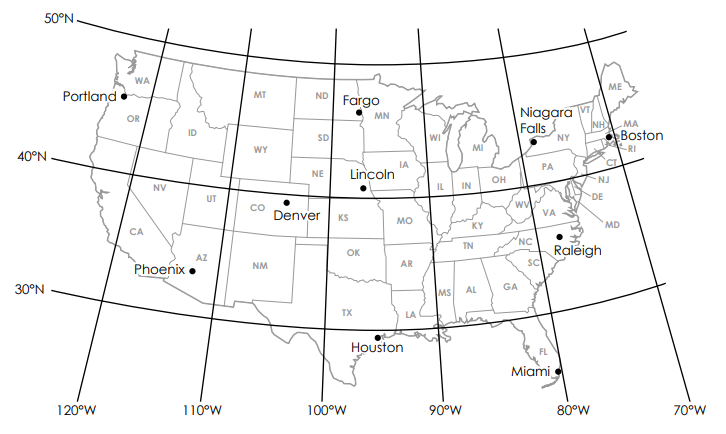 This city has a latitude of 41 N and longitude 96 W.