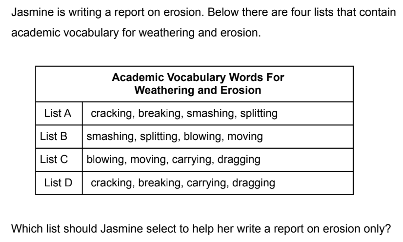 Give a scenario in which you correctly indentify the process of weathering, erosion, and deposition.