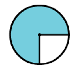 A circle has 360o. The blue-shaded part of this circle measures 270o. What fraction of the circle is shaded?