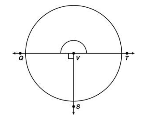 There are 360o in a circle. The arc of ∠SVT is 1/4 of this circle. What is the measure of ∠SVT?