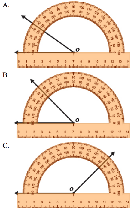 Which diagram below best illustrates angle O measuring 45o?