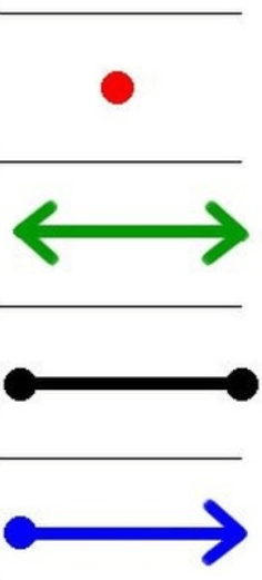 B. point, line, line segment, ray