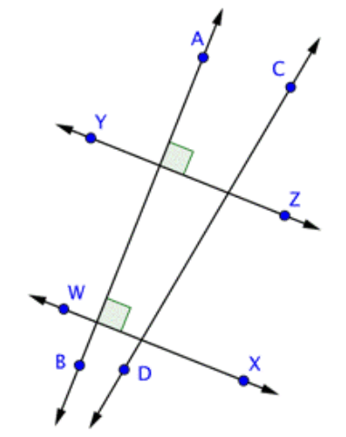 D. Line YZ is perpendicular to line WX.