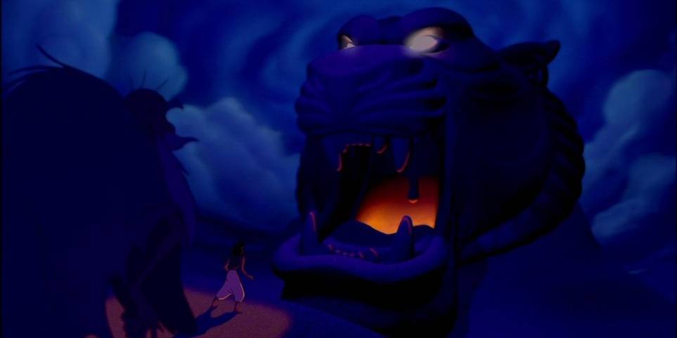 He takes him to a cave (the Cave of Wonders) and asks Aladdin to bring him the old oil lamp.
