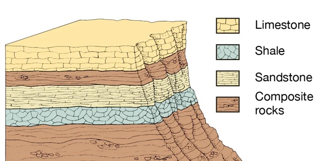 Different sediments build up in different environments. Therefore, different kinds of sedimentary rock form in different environments.