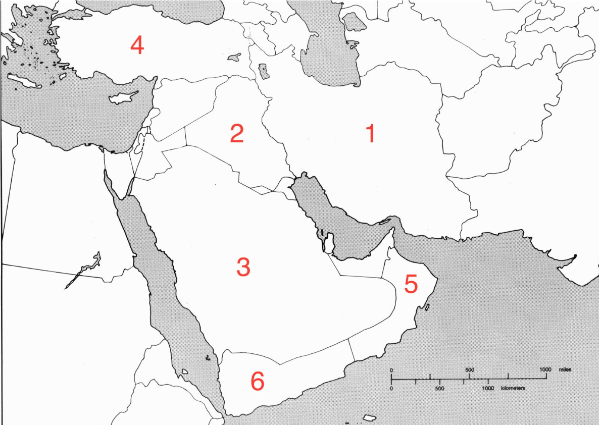 Identify the country labeled 6